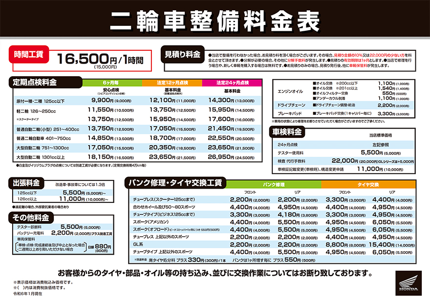 Honda Dreamで法令及びHondaが指定する点検整備実施した車両。